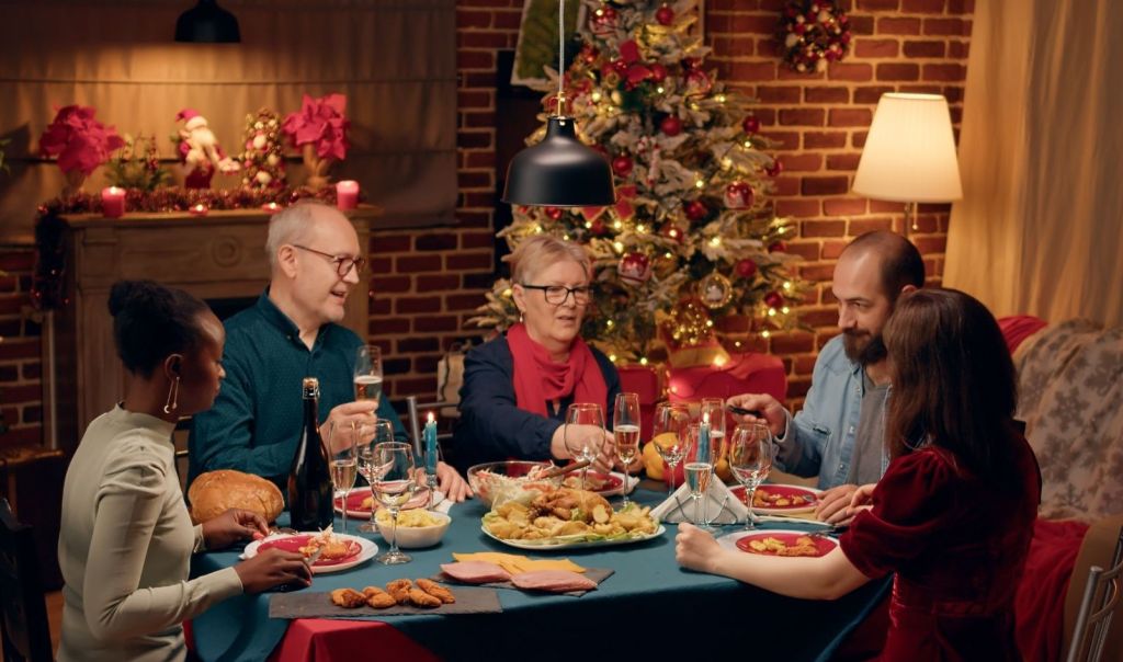 The atmosphere at his family’s house is buzzing with Christmas joy.