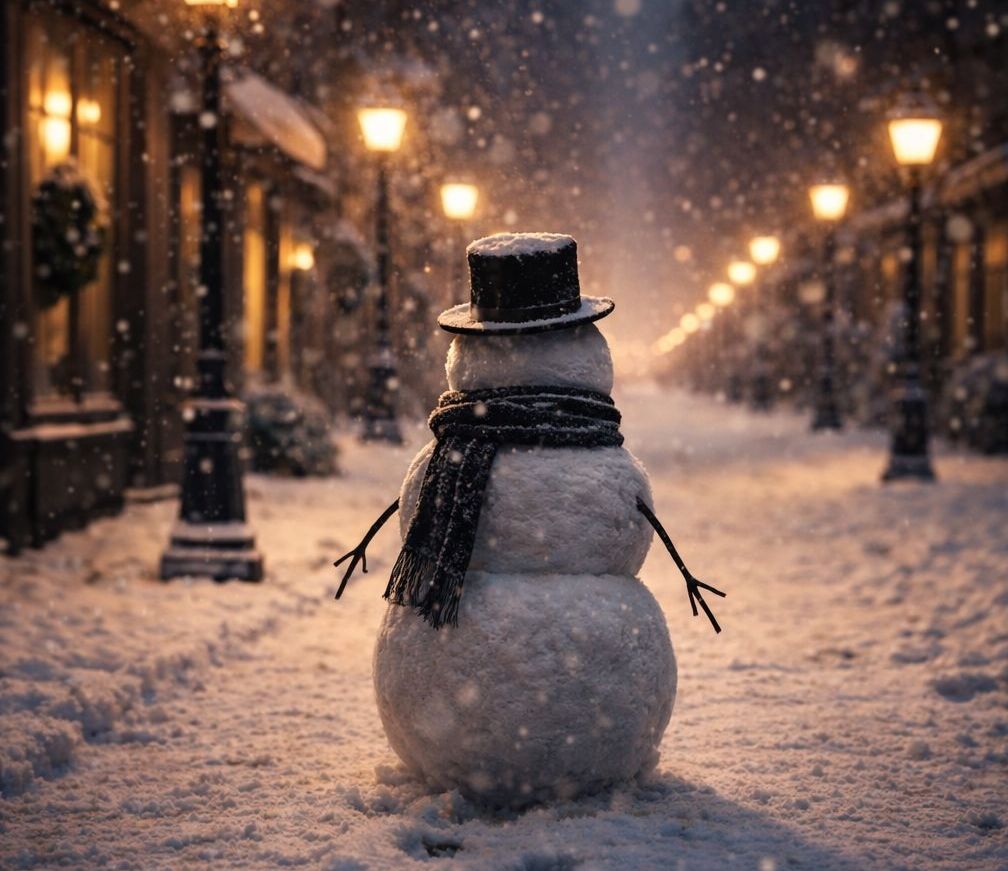 As he walks back to his apartment, he spots a large snowman on the sidewalk at the corner of the street. “Strange! Where did this snowman come from? I didn’t see it on my way here!”